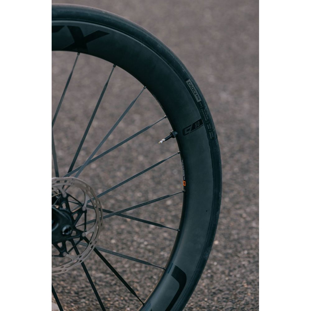 AERO UNLIMITED Wyposażone w całkowicie nowy profil aerodynamicznej obręczy 50 mm i w piasty aerodynamiczne nowej generacji R3-C, CADEX 50 Ultra Disc równoważy doskonałą aerodynamikę ze stabilnością i kontrolą w każdych warunkach. Innowacyjne szprychy z włókna węglowego Super Aero dodatkowo zwiększają wydajność i minimali Aerodynamiczny profil obręczy z włókna węglowego 50 mm, szprychy Super Aero i zupełnie nowe piasty aerodynamiczne tworzą kompletny system kół. Zwiększone wsparcie ściany bocznej i możliwość obniżenia ciśnienia w oponach znacznie poprawia prowadzenie i wyczucie drogi.