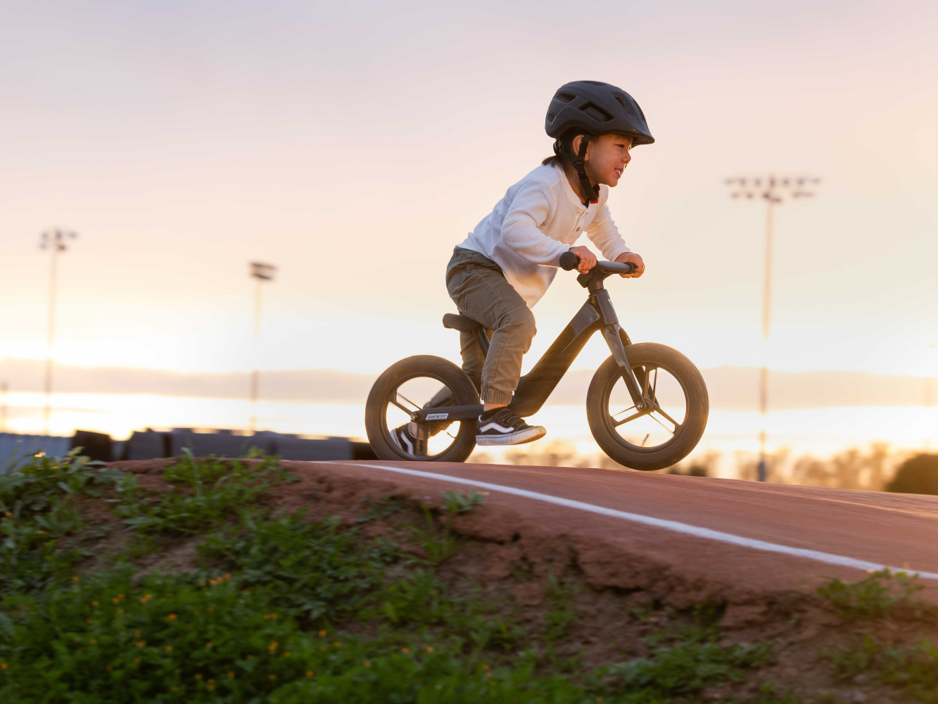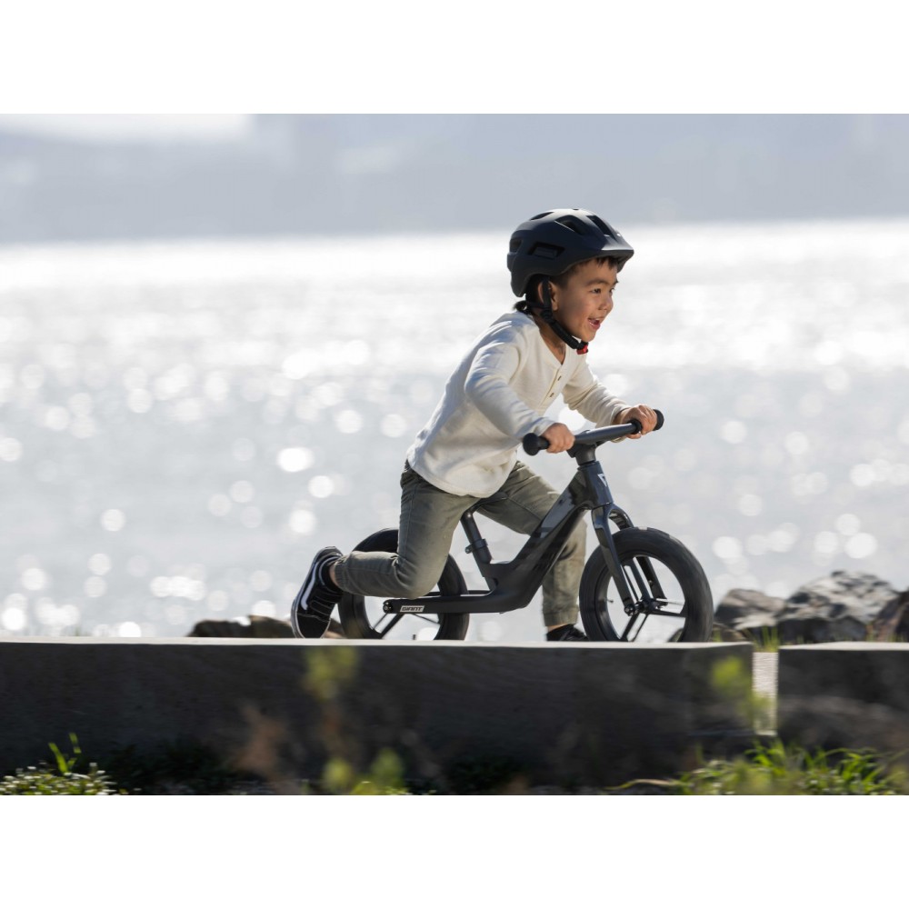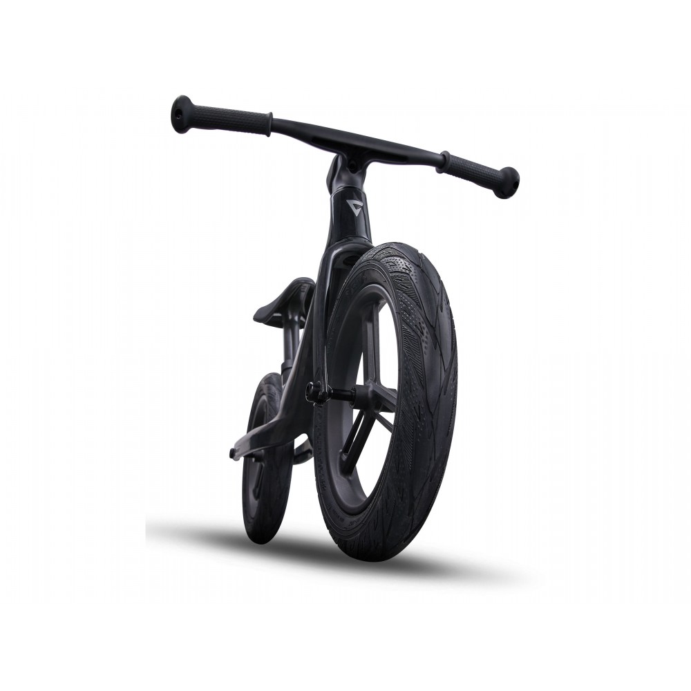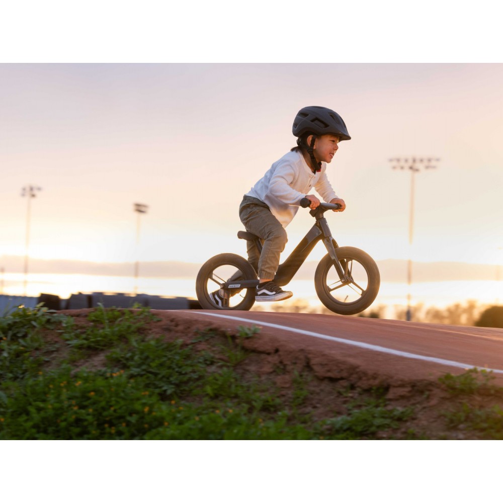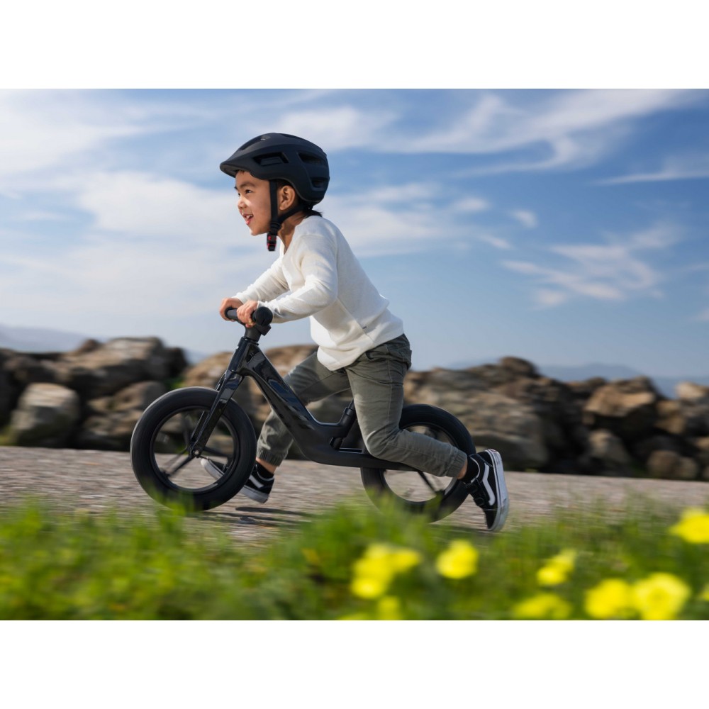 Stworzony niemal całkowicie z materiałów pochodzących z recyklingu, ten jedyny w swoim rodzaju rowerek biegowy jest niezwykle lekki, zapewnia mnóstwo frajdy z jazdy i jest łatwy w prowadzeniu. Karbonowa rama w połączeniu z 12-calowymi kołami i oponami o szerokości 1,75 cala pozwalają pokonywać każdą nawierzchnię. Pochylona sylwetka dziecka ułatwia odpychanie.