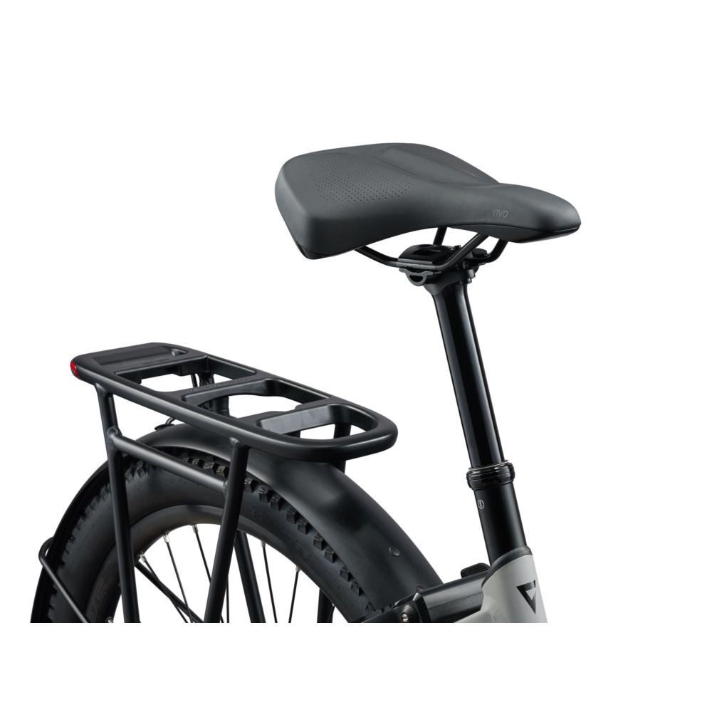 Zaprojektowany, by zachować kontrolę nawet na nieprzewidywalnych nawierzchniach – szerokie, 27,5-calowe opony ułatwiają prowadzenie, podczas gdy widelec o większym skoku oraz amortyzowana sztyca regulowana pomagają pochłaniać silne uderzenia. Od miejskich krawężników po przeszkody na szlaku – system zapewnia Ci pewną kontrolę w zróżnicowanym terenie. Efektem jest jazda, która pozwala utrzymać tempo i płynnie pokonywać nierówności bez chwili wahania.
