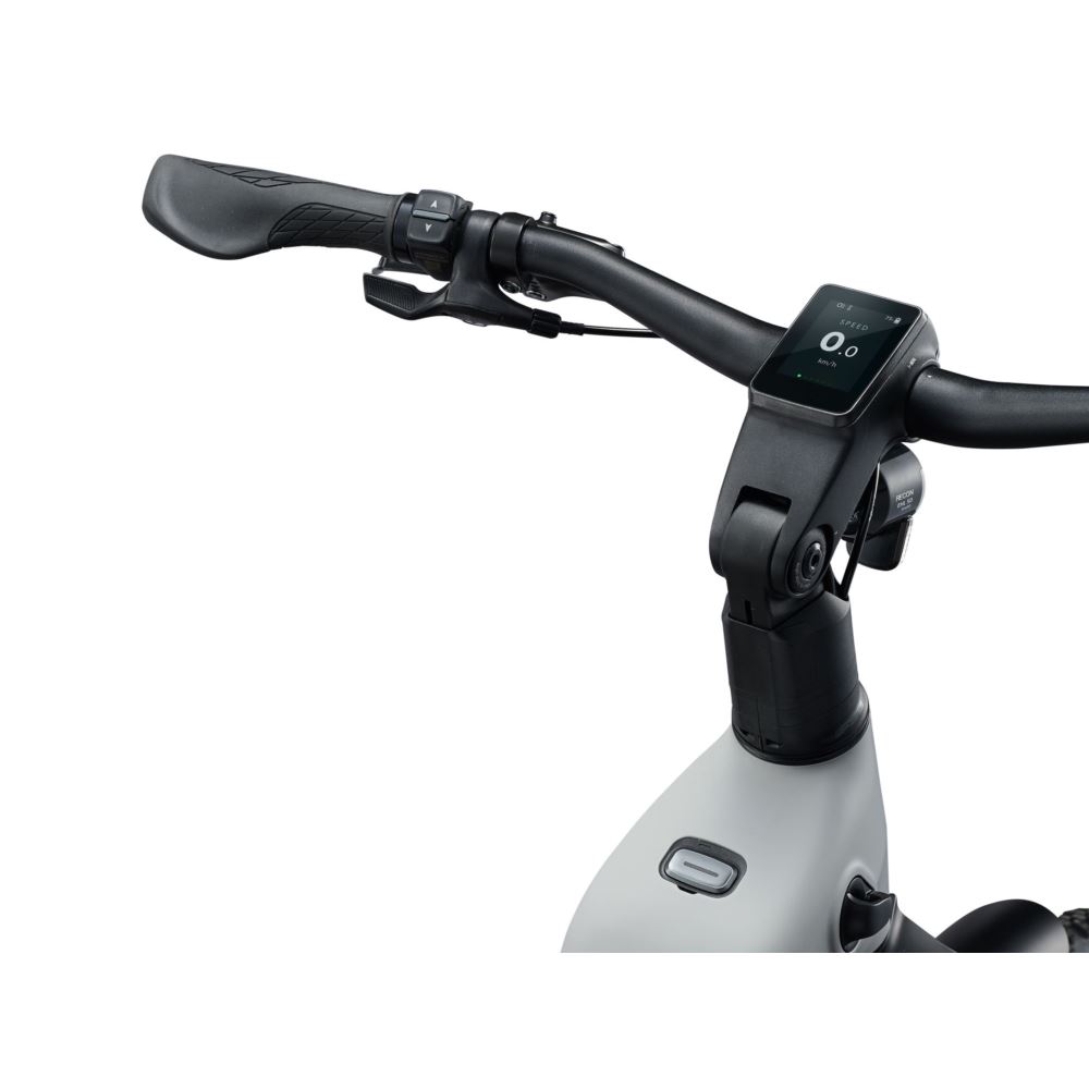 Wygodny dostęp do kierownicy i wyprostowana sylwetka zapewniają idealny balans między komfortem a kontrolą, redukując zmęczenie przy jednoczesnym zachowaniu responsywnego prowadzenia. Zaprojektowany z myślą o długich wyprawach w zmiennych warunkach, kokpit integruje obsługę RideControl do zarządzania trybami wspomagania oraz — w odpowiednio wyposażonych modelach — elektroniczną zmianę przełożeń dla napędów Enviolo i Shimano. Wszystko to zrobisz bez odrywania rąk od kierownicy, co pozwala Ci skupić całą uwagę na torze jazdy i manewrowaniu, a nie na obsłudze przełączników.